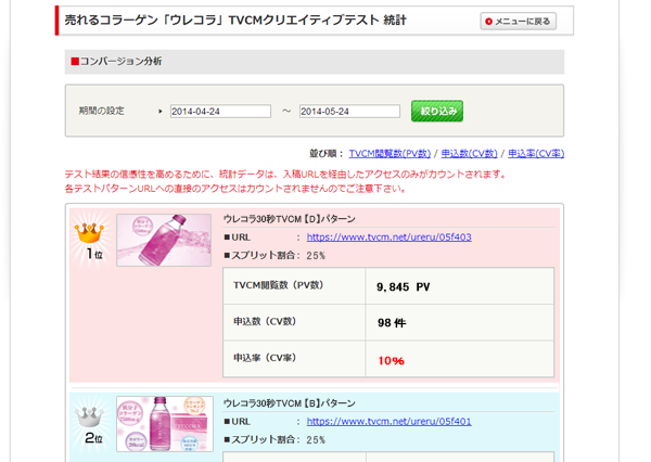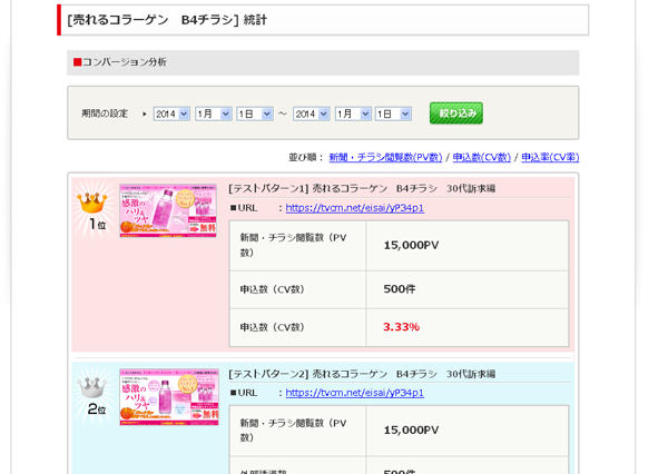 最大化されます。 日本の大手メーカー系通販(D2C)のコンサルティングの約7割を独占し、担当した"すべて"のクライアントを大成功させてきた売れるネット広告社 加藤公一レオは、この14年間であらゆる広告主(クライアント)から累計で"200億円"以上の広告費をお預かりして、"何百回"の【A/Bテスト】を繰り返し、広告主の広告クリエイティブの効果を劇的に改善してきました。 その中で、売れるネット広告社は、この4年間であらゆるクライアントの協力の元、1億円以上の広告予算を使い大規模な"実験"を実施。あらゆる広告主の“TVCM”や“新聞広告”などの広告クリエイティブの【A/Bテスト】をネットメディア上で行いました。 その結果、『ネットメディア上の【A/Bテスト】で一番効果が高く1位"となった“TVCM”や“新聞広告”の広告クリエイティブは、ズバリ、テレビや新聞などのマスメディアでそのまま使っても同様に一番効果が高く"1位"となる!』という衝撃の"事実"を発見! そこで、“TVCM”やインフォマーシャル、“新聞広告”やチラシなどのマスメディア(オフライン)の広告クリエイティブであっても、ネットメディア(オンライン)の広告を使って早く・安く・簡単に・正確に【A/Bテスト】を行い、最高に効果の高い広告クリエイティブを広告キャンペーン前に選定(判断)することができる世界初のツール(ASP)の『売れる TVCM クリエイティブテスター』『売れる 新聞・チラシ クリエイティブテスター』を開発しました!!! 『売れる TVCM クリエイティブテスター』『売れる 新聞・チラシ クリエイティブテスター』は、ネット広告での正確な【A/Bテスト】を行うために必要な「広告クリエイティブテスト用ランディングページ制作機能」「通販(D2C)機能」「テスト結果測定・分析機能」を有しています。専門的な知識がなくても“TVCM”や“新聞広告”の広告クリエイティブ素材さえ用意しておけば、10分程の簡単な登録作業で、テスト用のランディングページと入稿URLが完成し、“TVCM”や“新聞広告”の広告クリエイティブの【A/Bテスト】をネットメディア(オンライン)上で行えるようになります。 ![]() ▲マスメディア(オフライン)の広告でも、『売れる TVCM クリエイティブテスター』『売れる 新聞・チラシ クリエイティブテスター』を使って事前に【A/Bテスト】することで効果を最大化できます。